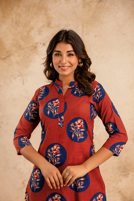 Pure Cotton Floral Kurta Pant Dupatta Set